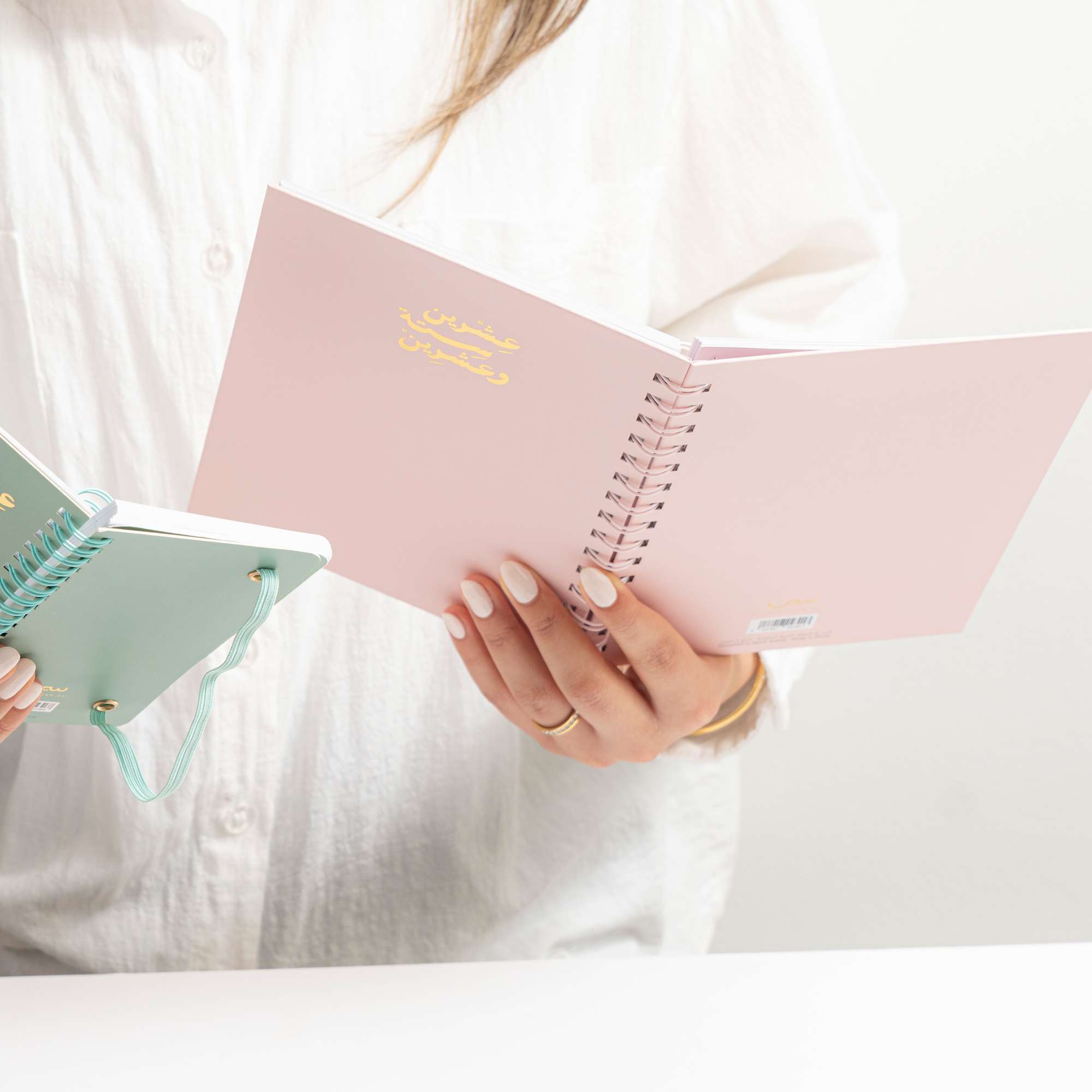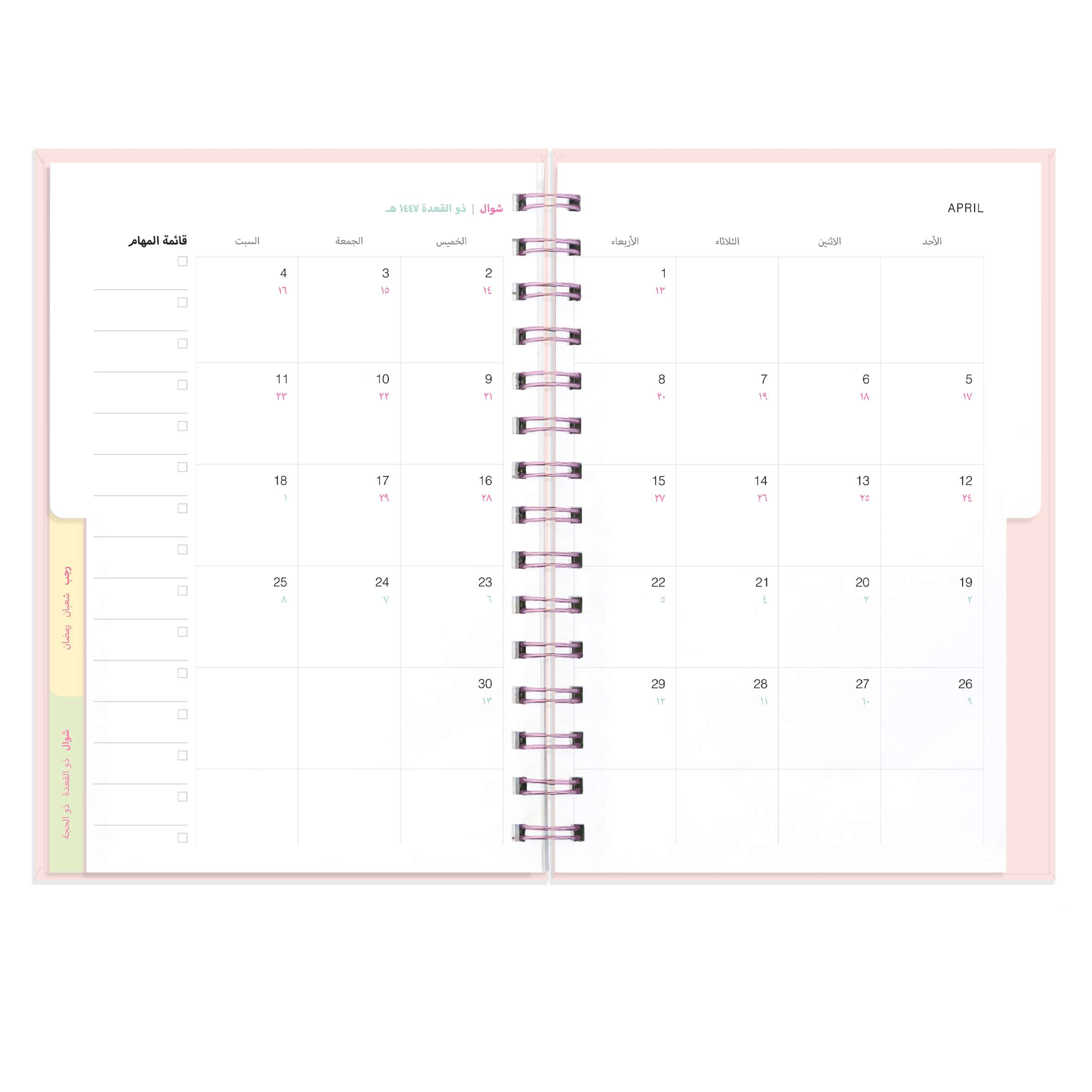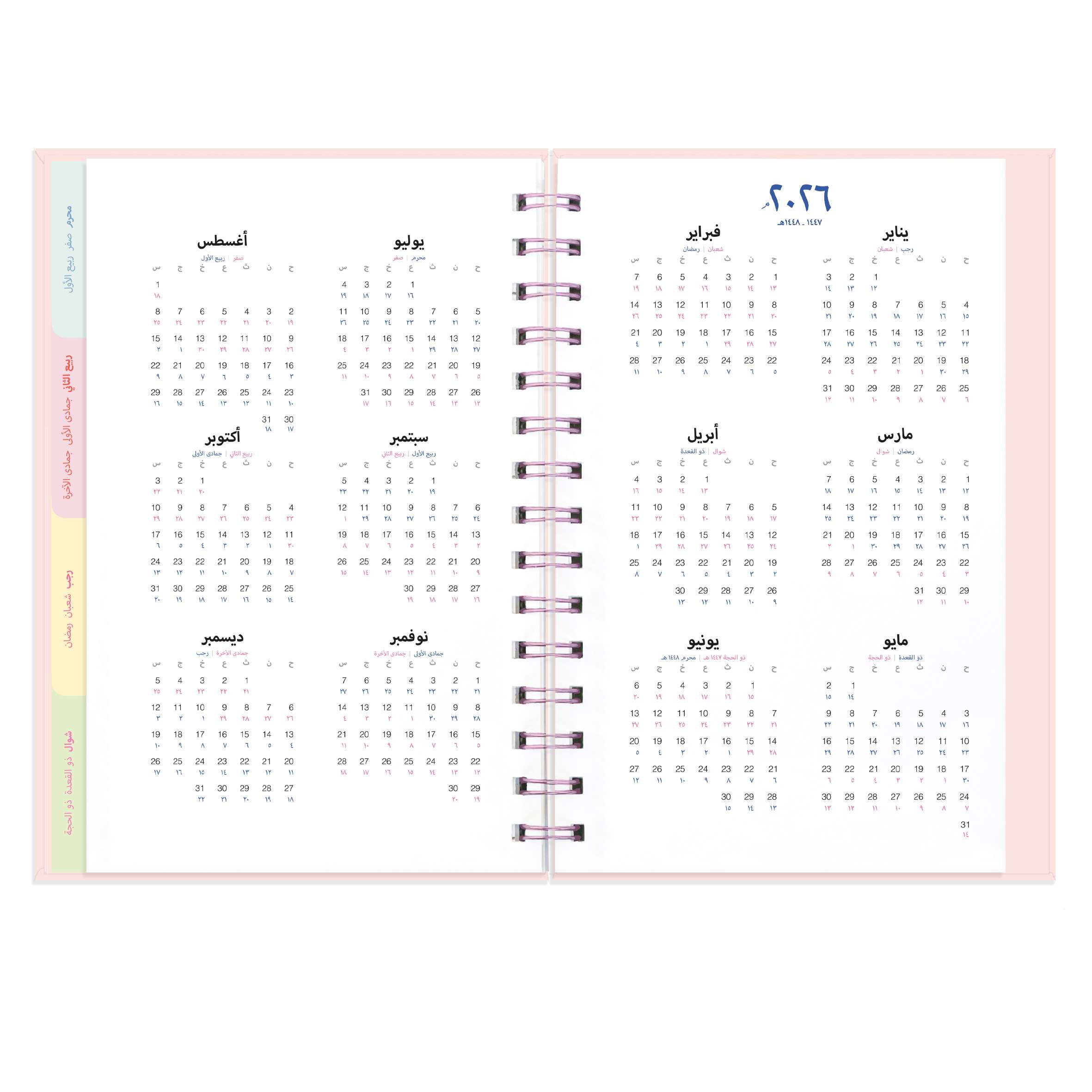 ابدئي عامك بتنظيم جميل مع أجندة “سين” لعام 2026م ، بتواريخ ميلادية وهجرية، بلون زهري هاديء وبعبارة لامعة “عشرين ستة وعشرين” مكتوبة بخط يدوي حر.