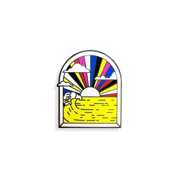 دبوس معدني، “من الأزرق ابتدأ البحر” أسود وذهبي