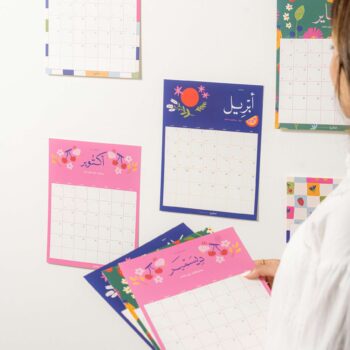 تقويم حائطي “أشكال”، يتضمن تواريخ السنة الميلادية 2026م مع وجود تواريخ هجرية لترين شهور السنة كاملة أمام عينيك، بالإضافة إلى ملصق فني في الجهة الخلفية يحتوي على أشكال بألوان مفعمة بالبهجة، مثالي كزينة حائط على المكتب أو الجدار أو الثلاجة.