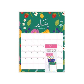 تقويم حائطي “أشكال”، يتضمن تواريخ السنة الميلادية 2026م مع وجود تواريخ هجرية لترين شهور السنة كاملة أمام عينيك، بالإضافة إلى ملصق فني في الجهة الخلفية يحتوي على أشكال بألوان مفعمة بالبهجة، مثالي كزينة حائط على المكتب أو الجدار أو الثلاجة.
